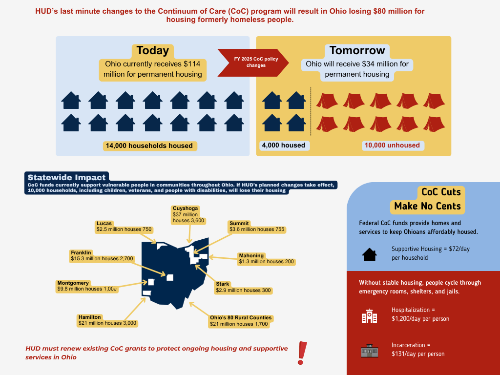 - If allowed to take effect, HUD’s changes will amount to an $80 million cut in federal funding that currently houses formerly homeless Ohioans